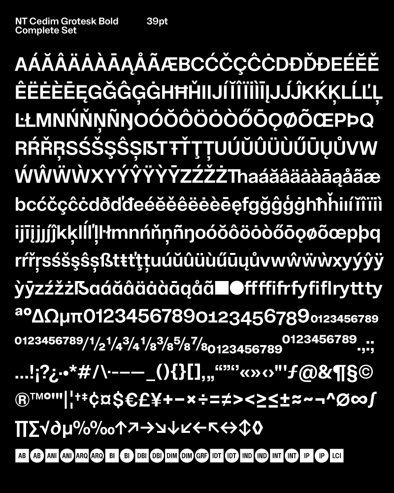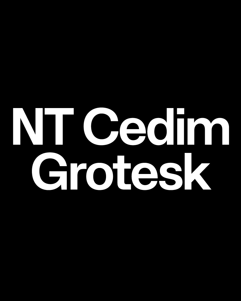 NT Cedim Grotesk is a typeface that conveys strength and modernity, with tight spacing and geometric construction, creating a visual presence that dominates the space and communicates with clarity and authority.